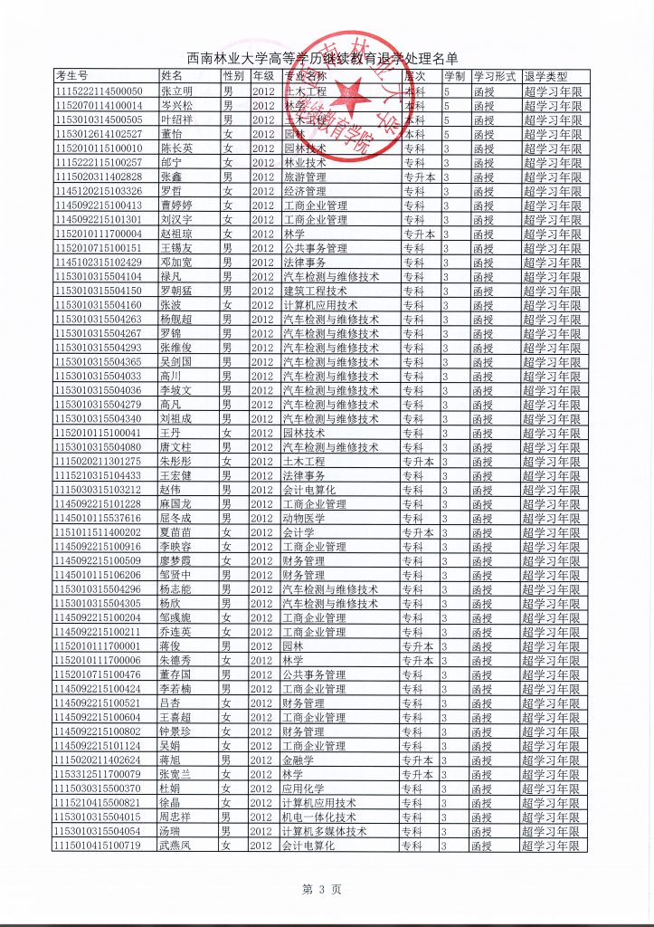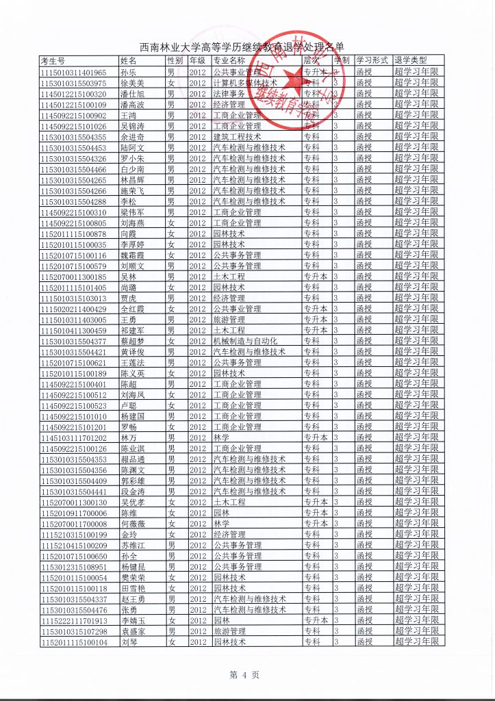 关于给予潘冬亮等165人退学处理的决定