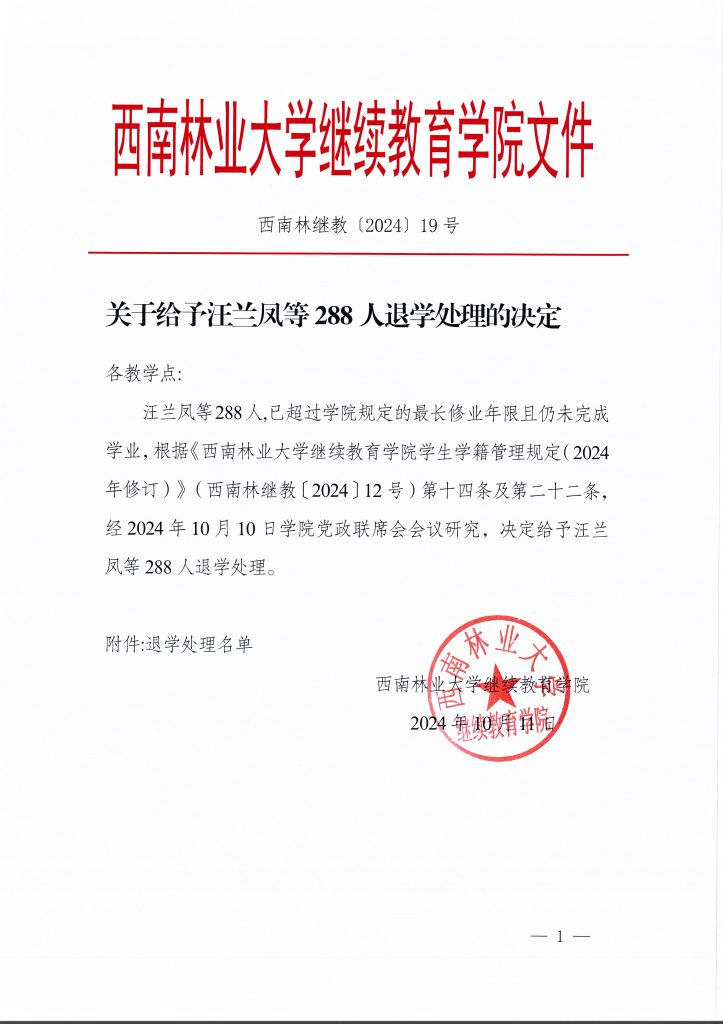 关于给予汪兰凤等288人退学处理的决定